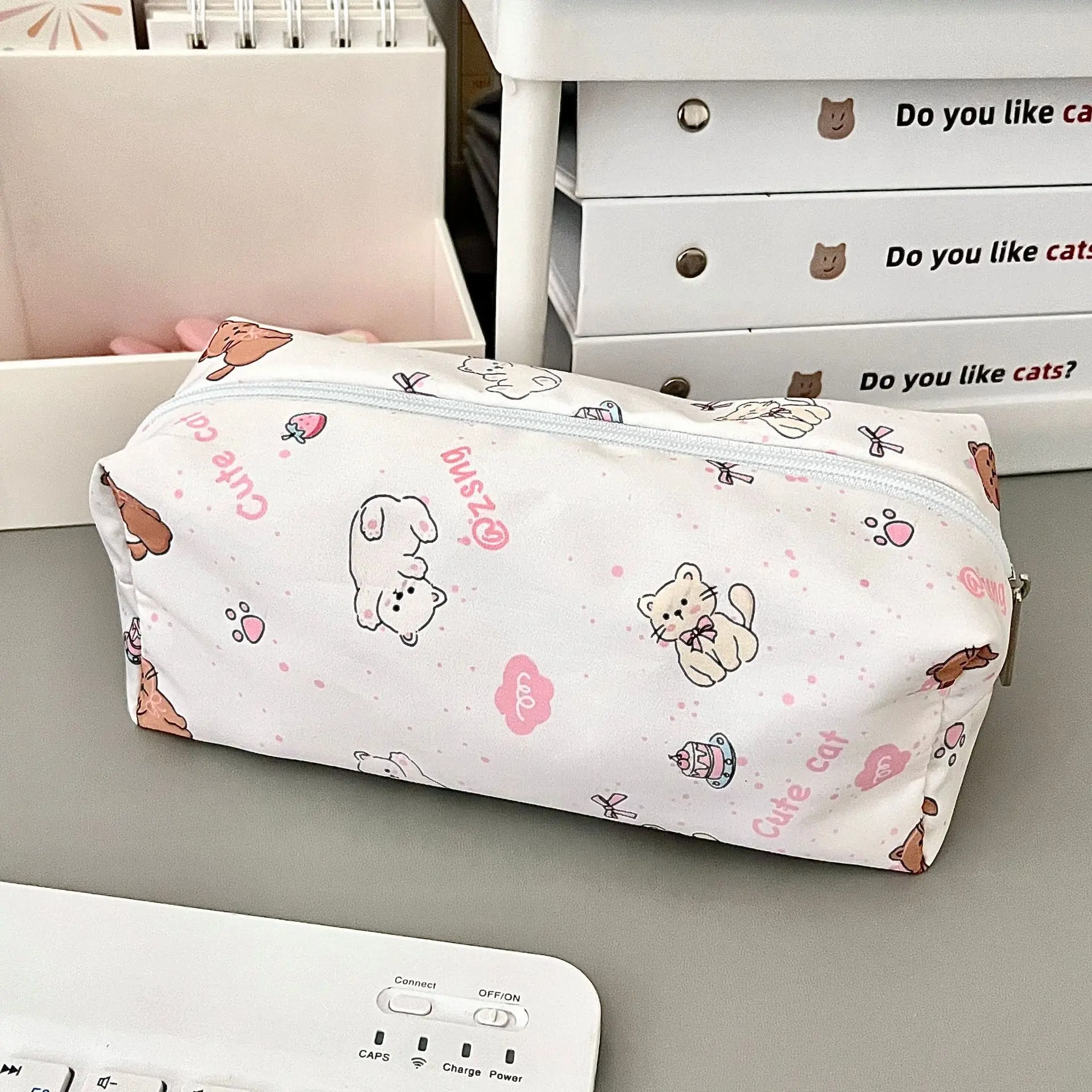 Korean Simple Cute Cartoon Animal Park Pencil Case Portable Stationery Organizer Pouch Kawaii Girls School Supplies Makeup Bag