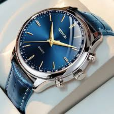 Men’s Elegant Blue Quartz Wristwatch features a stylish blue dial, precise quartz movement, and a comfortable leather strap—perfect for casual wear, business style, and gift occasions.
