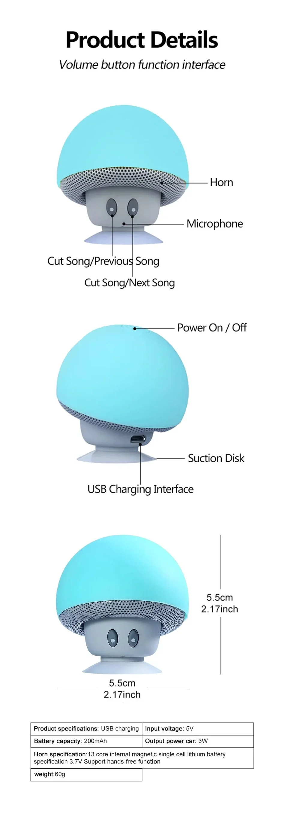 Portable and Suction Cup:The speaker is small, lightweight and easy to carry. It also comes with a suction cup that allows you to attach it to any smooth surface.